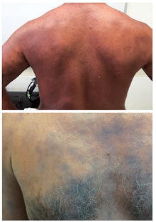 Abb. 1 Hautmanifestation bei Erstvorstellung: Papeln und erythematöse, ödematöse Plaques am Rumpf