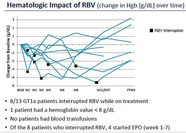 Patienten mit GT1a (n=65) erhalten zusätzlich 200 mg Ribavirin